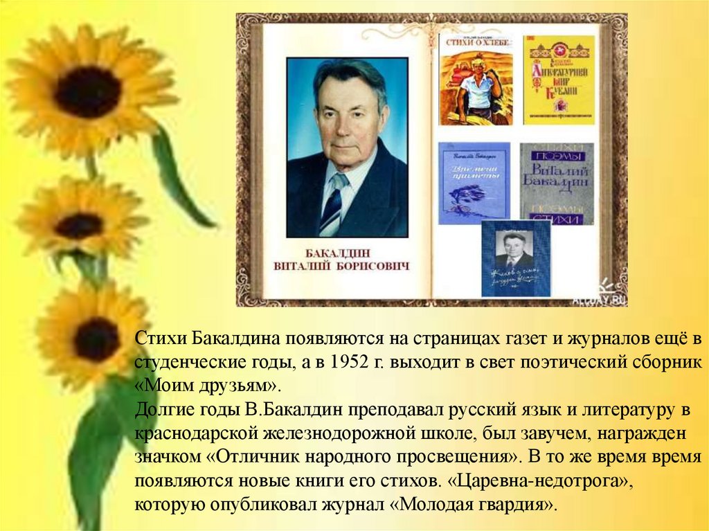 Долгие годы В.Бакалдин преподавал русский язык и литературу в