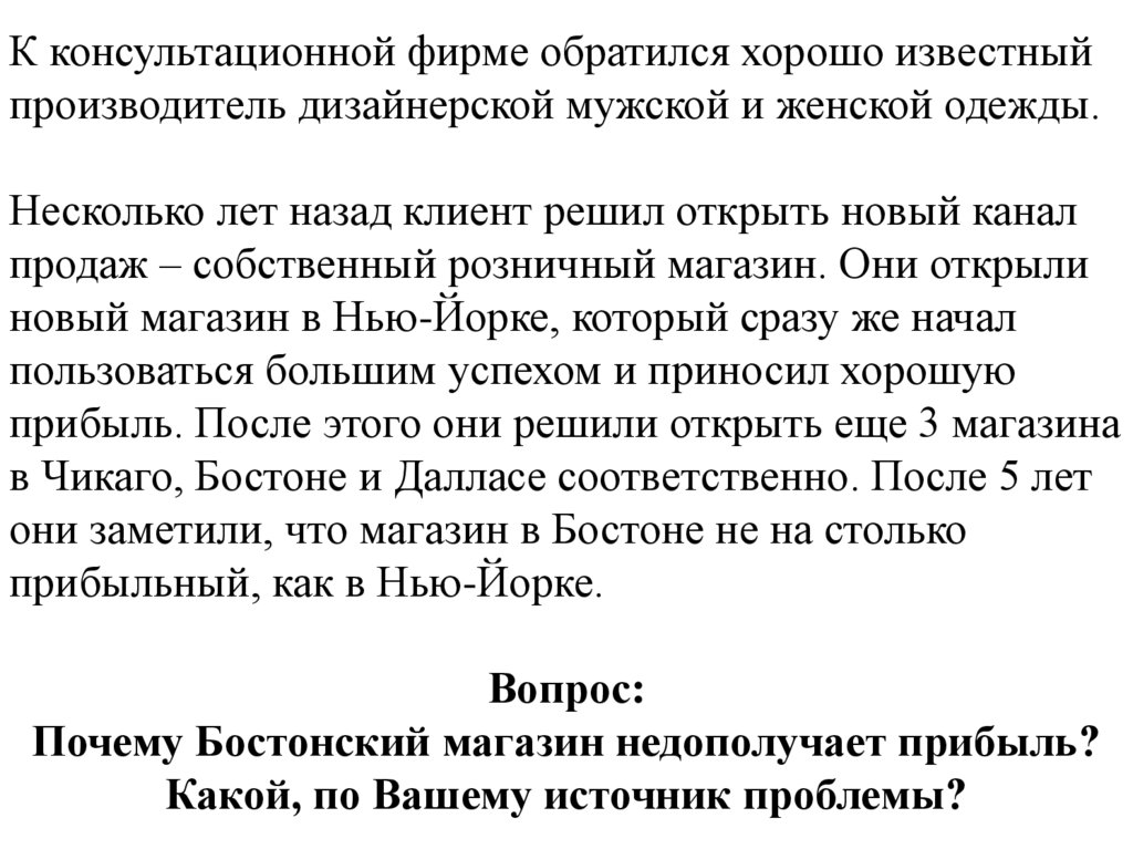 Почему Бостонский магазин недополучает прибыль?