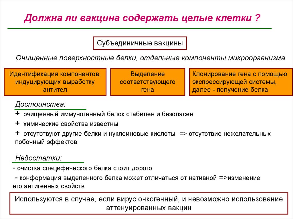 Должна ли вакцина содержать целые клетки ?Субъединичные вакцины