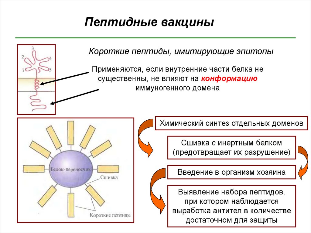 Пептидные вакциныКороткие пептиды, имитирующие эпитопы