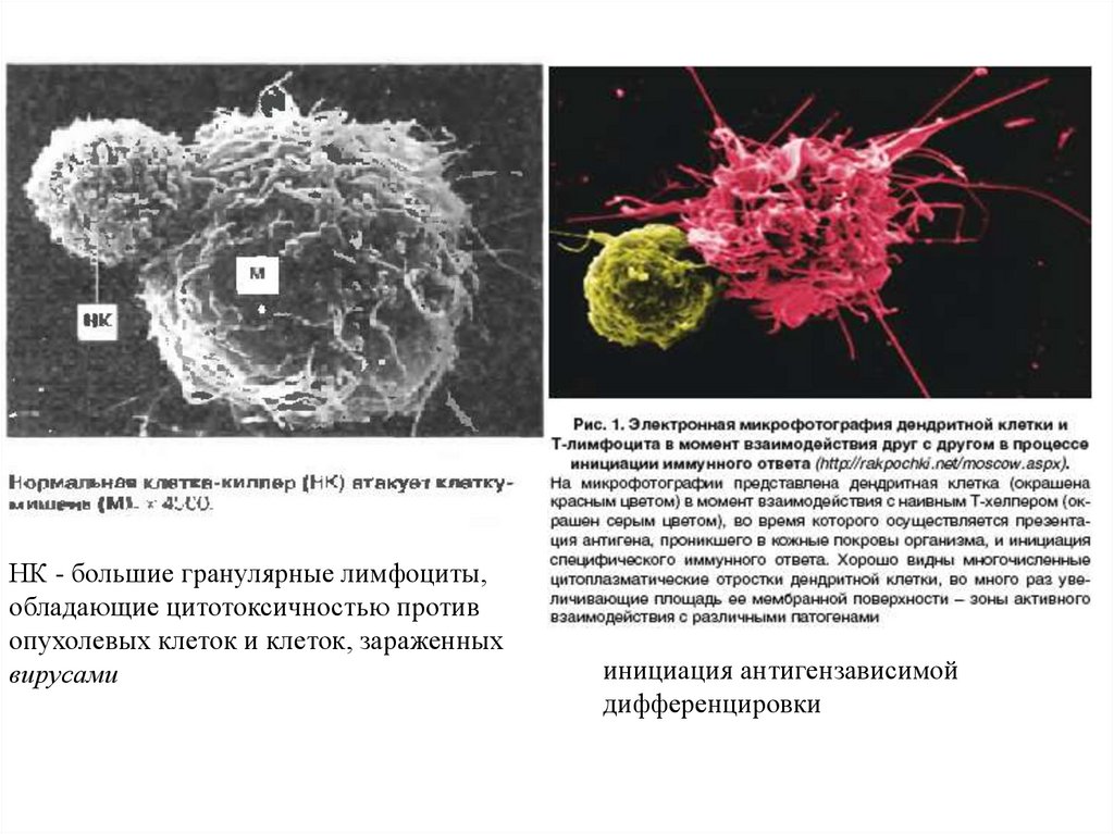 несколько популяций, которые взаимодействуют с Влимфоцитами, убивают зараженные вирусом клетки,