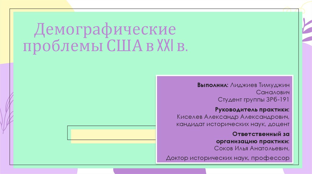 Выявить имеющиеся в настоящем времени ипотенциальные демографические тенденции,
