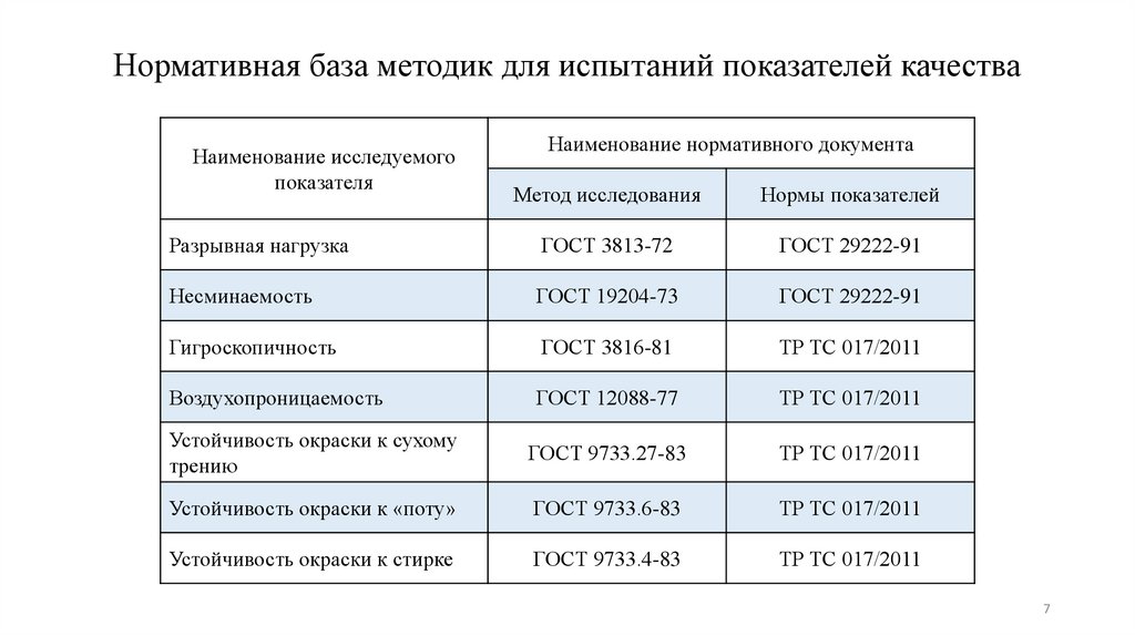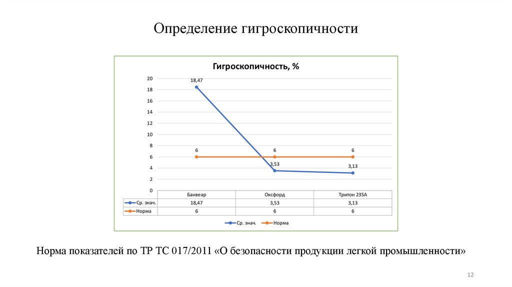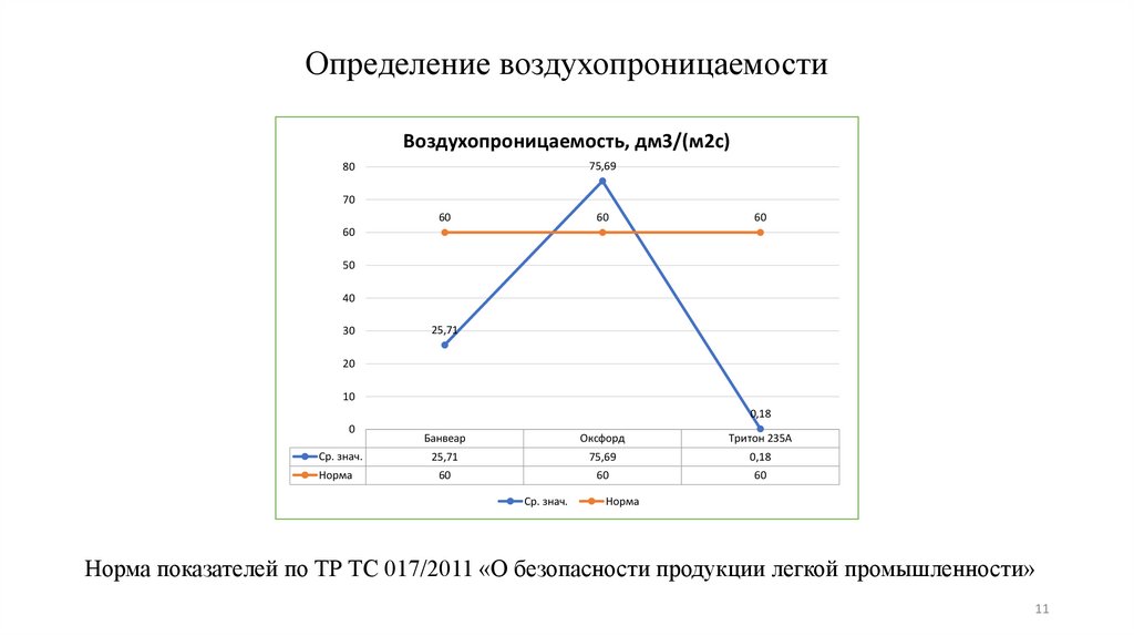 Норма показателей по ТР ТС 017/2011 «О безопасности продукции легкой промышленности»
