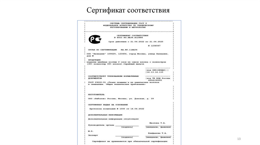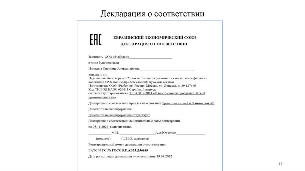 Рассмотрение процедуры подтверждения соответствия на примере рыболовного костюма