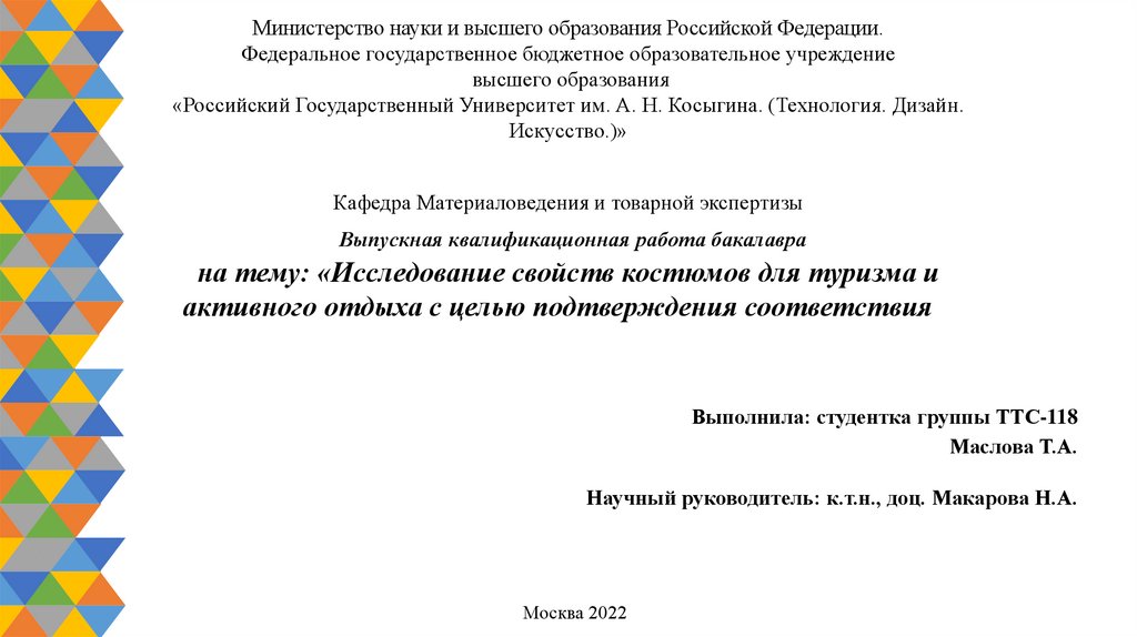 1. Кафедра Материаловедения и товарной экспертизы Выпускная квалификационная работа бакалавра на тему: «Исследование свойств
