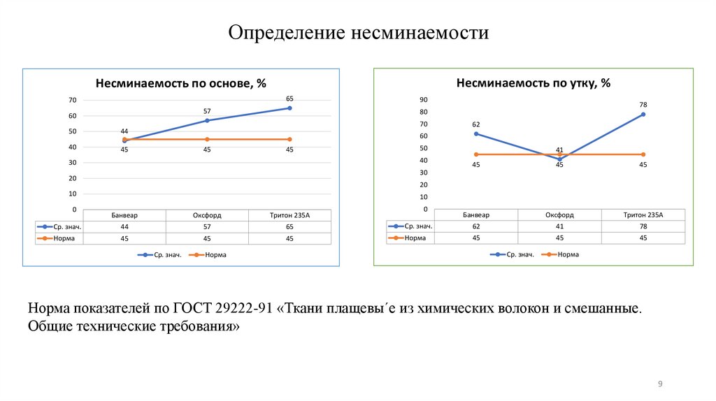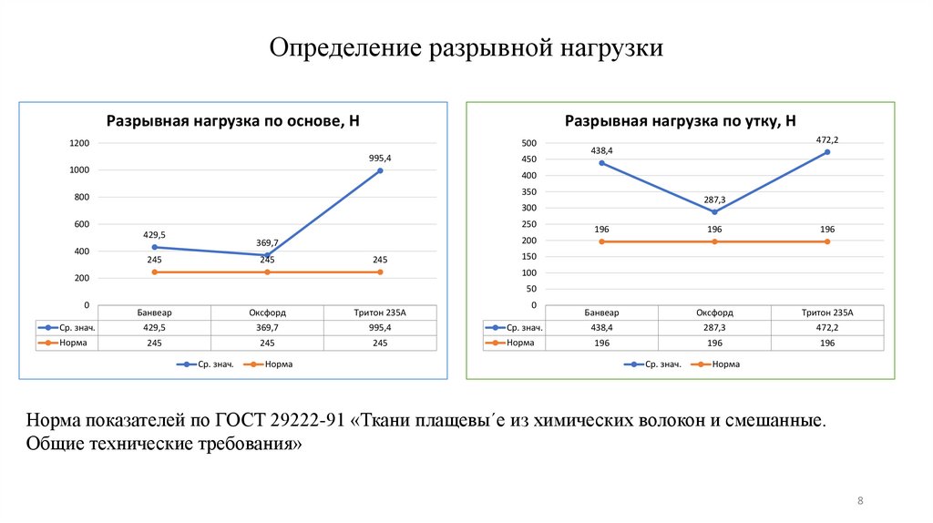 Норма показателей по ГОСТ 29222-91 «Ткани плащевы´е из химических волокон и смешанные.
