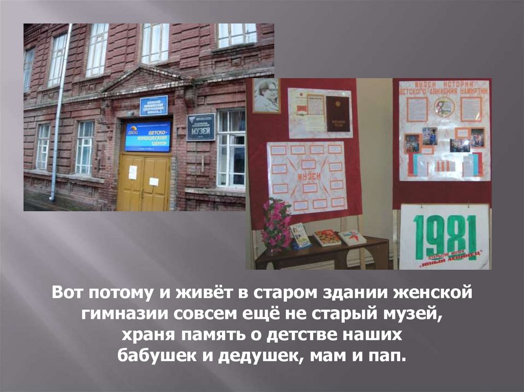Вот потому и живёт в старом здании женскойгимназии совсем ещё не старый музей,