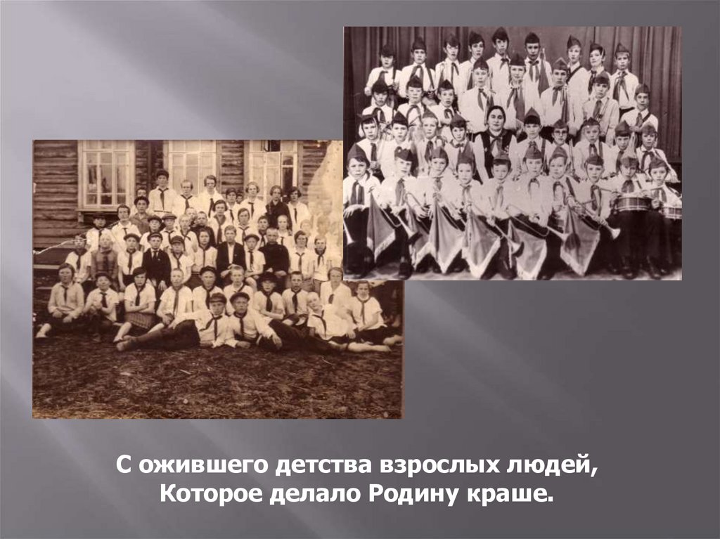 С ожившего детства взрослых людей,Которое делало Родину краше.
