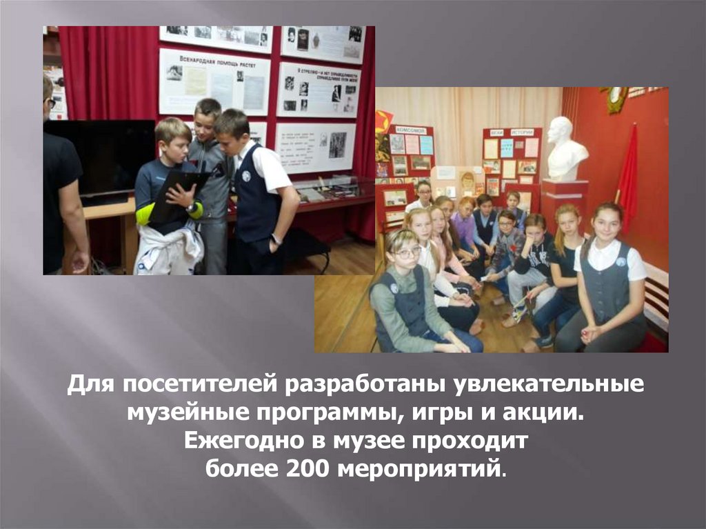 Для посетителей разработаны увлекательныемузейные программы, игры и акции.