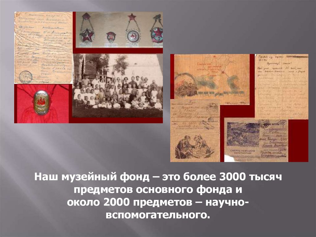 Наш музейный фонд – это более 3000 тысячпредметов основного фонда и