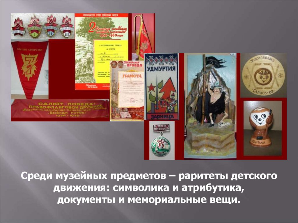Среди музейных предметов – раритеты детскогодвижения: символика и атрибутика,