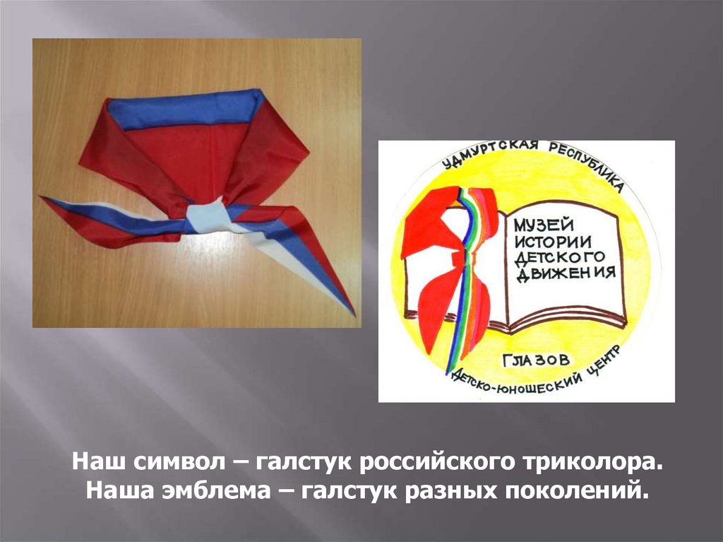 Наш символ – галстук российского триколора.Наша эмблема – галстук разных поколений.