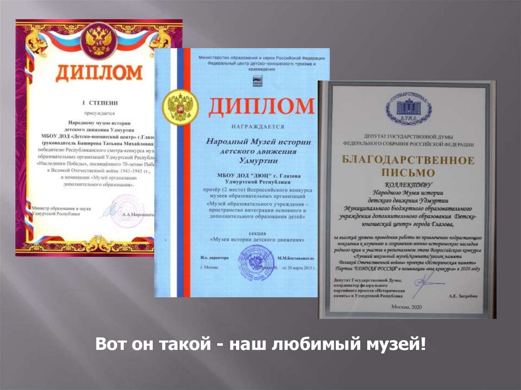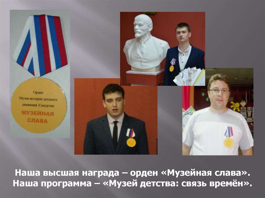 Наша высшая награда – орден «Музейная слава».Наша программа – «Музей детства: связь времён».