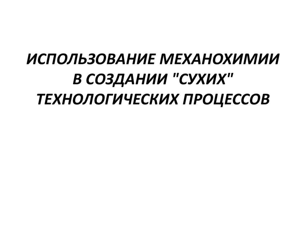 1. ИСПОЛЬЗОВАНИЕ МЕХАНОХИМИИ В СОЗДАНИИ "СУХИХ" ТЕХНОЛОГИЧЕСКИХ ПРОЦЕССОВ