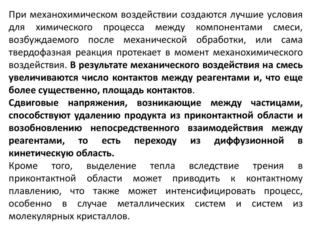 При механохимическом воздействии создаются лучшие условиядля химического процесса между компонентами смеси,