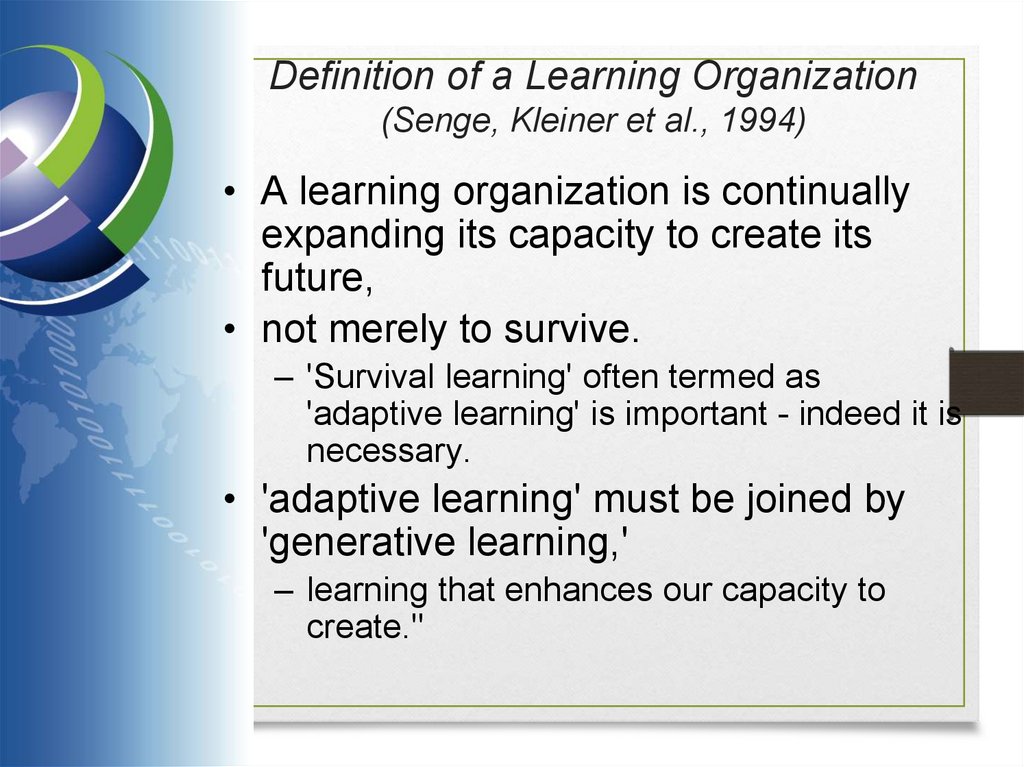 12. Definition of a learning organization