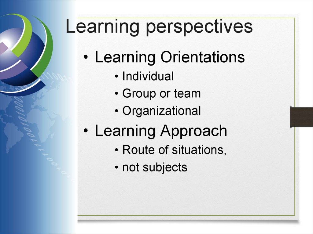 Learning perspectives• Learning Orientations