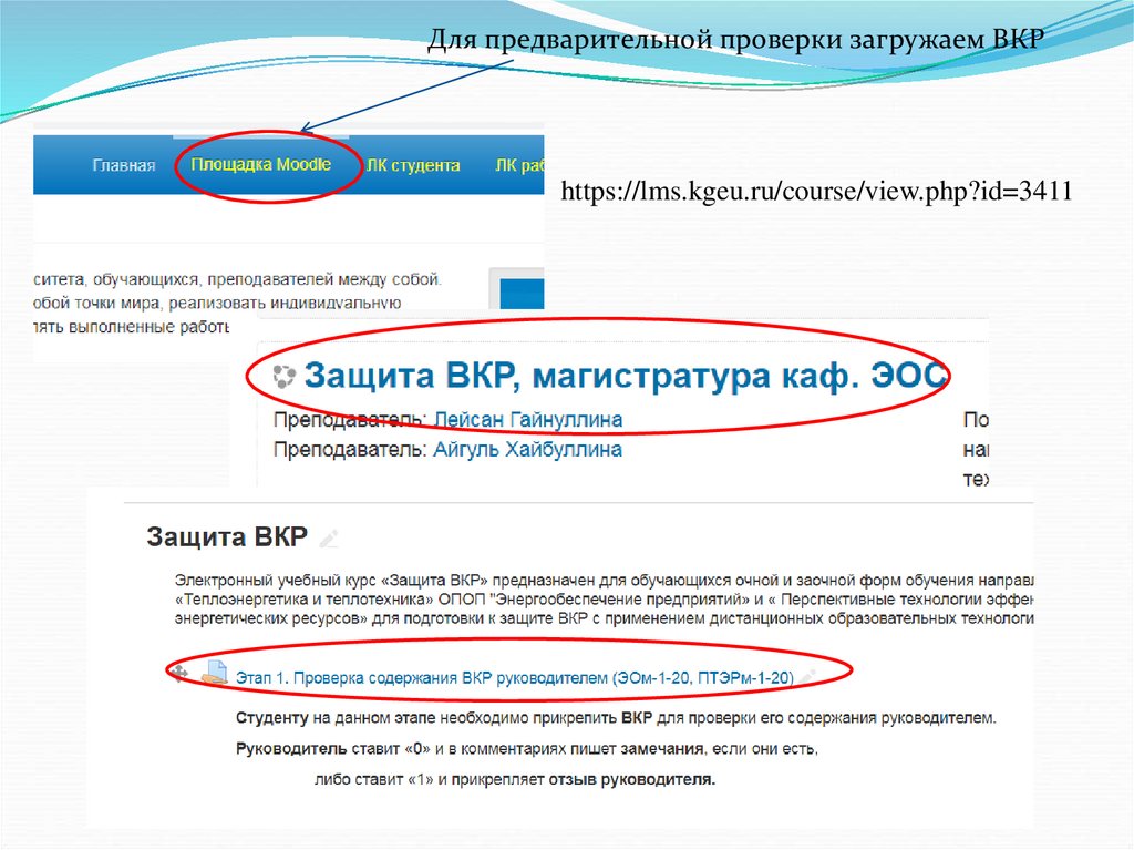 Для предварительной проверки загружаем ВКРhttps://lms.kgeu.ru/course/view.php?id=3411