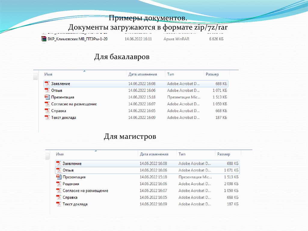 Примеры документов.Документы загружаются в формате zip/7z/rar