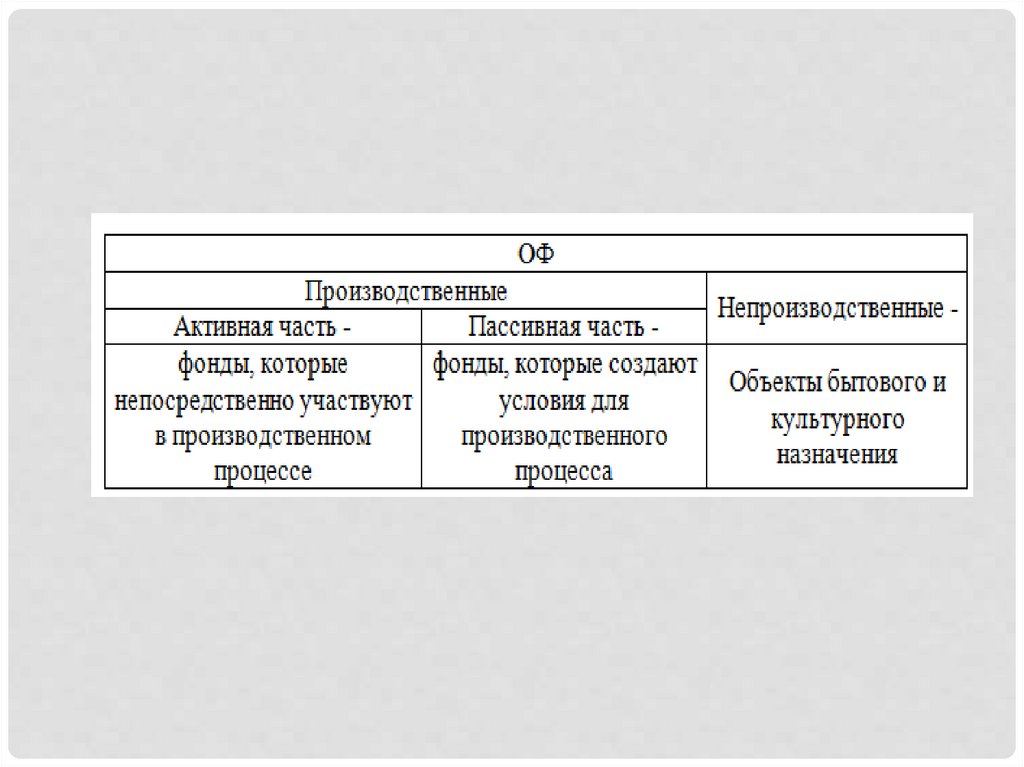 СТОИМОСТЬ ОФСтоимость основных фондов на конец периода