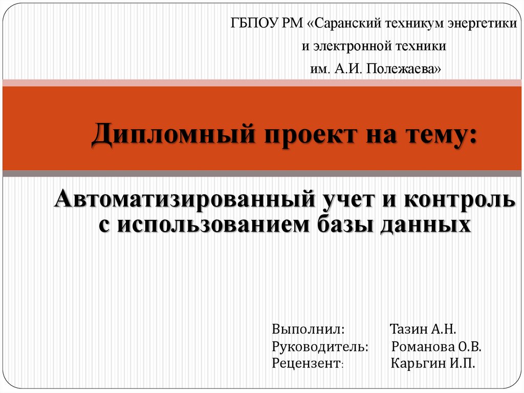 Дипломный проект на тему:Автоматизированный учет и контроль