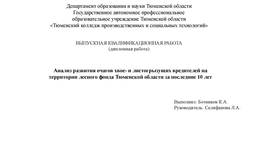 Анализ развития очагов хвое- и листогрызущих вредителей на территории лесного фонда Тюменской области за последние 10 лет