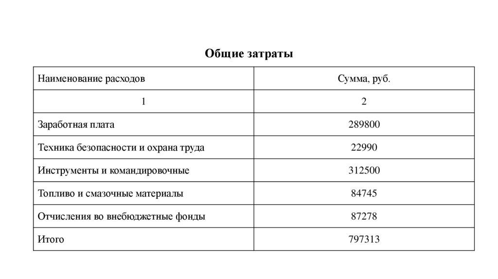 Общие затратыНаименование расходов