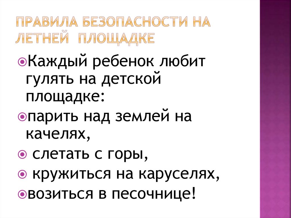2. пРавила безопасности на летней площадке