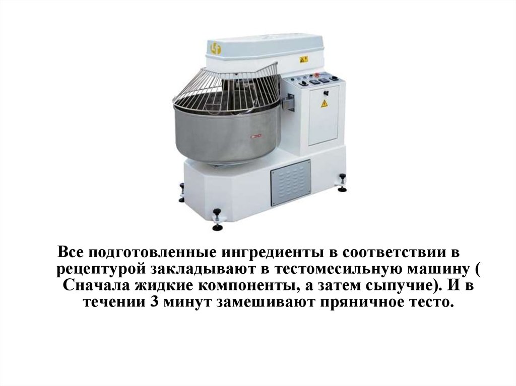 Все подготовленные ингредиенты в соответствии врецептурой закладывают в тестомесильную машину (