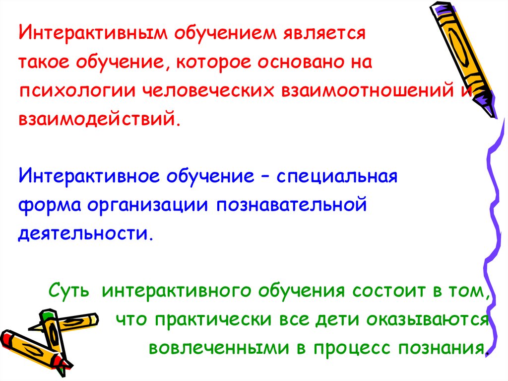 Интерактивным обучением являетсятакое обучение, которое основано на