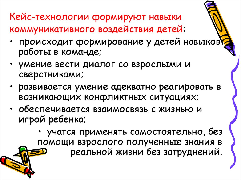 Кейс-технологии формируют навыкикоммуникативного воздействия детей: