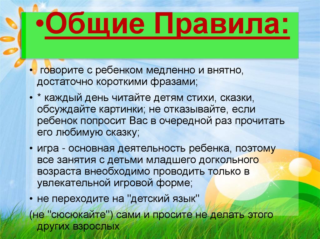 •Общие Правила:• говорите с ребенком медленно и внятно,