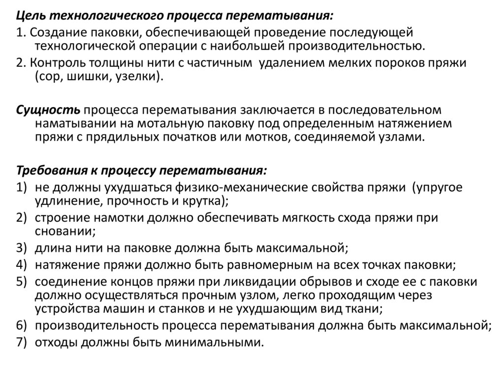 Требования к процессу перематывания: