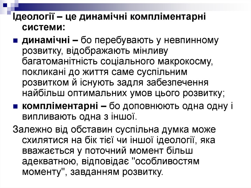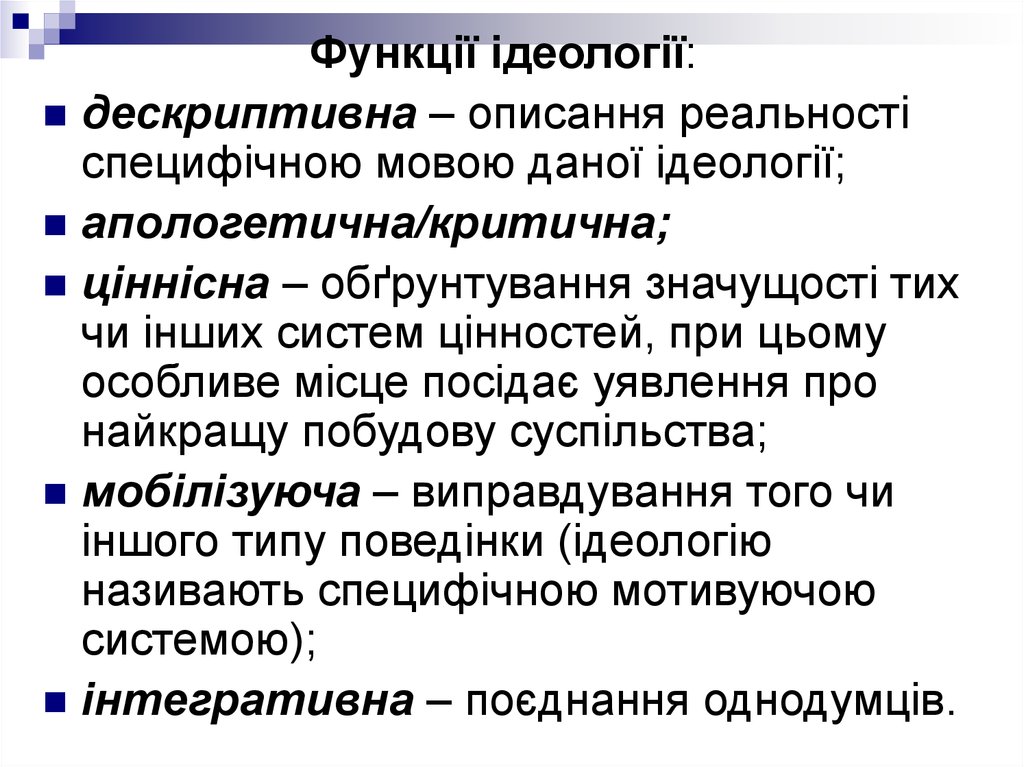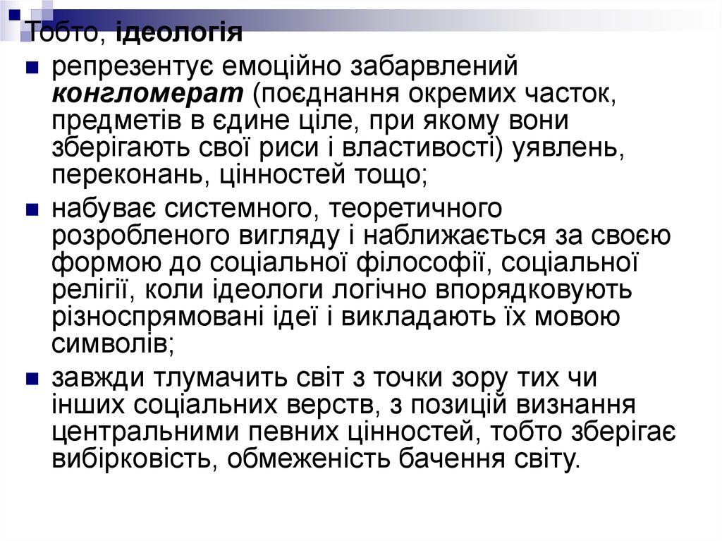 Тобто, ідеологіярепрезентує емоційно забарвлений