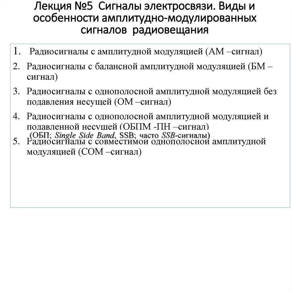 Лекция №5 Сигналы электросвязи. Виды иособенности амплитудно-модулированных