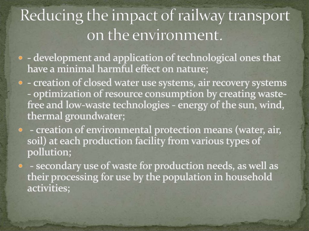 Меры по снижению воздействия ж.д транспорта на окружающую среду