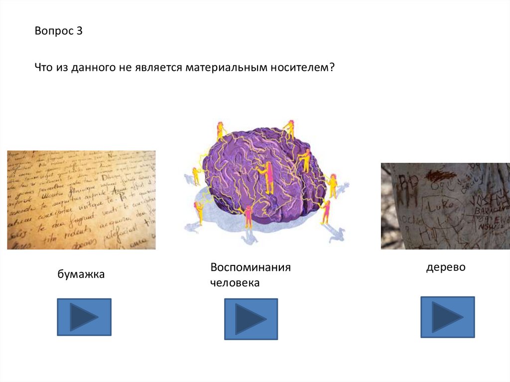 Вопрос 3Что из данного не является материальным носителем?