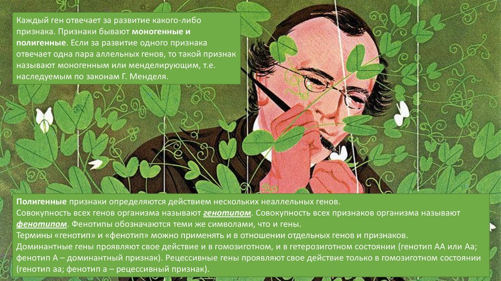 Каждый ген отвечает за развитие какого-либопризнака. Признаки бывают моногенные и