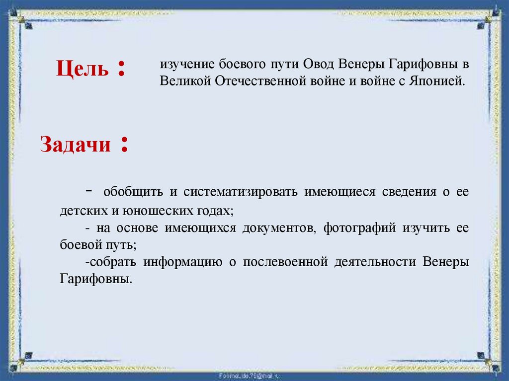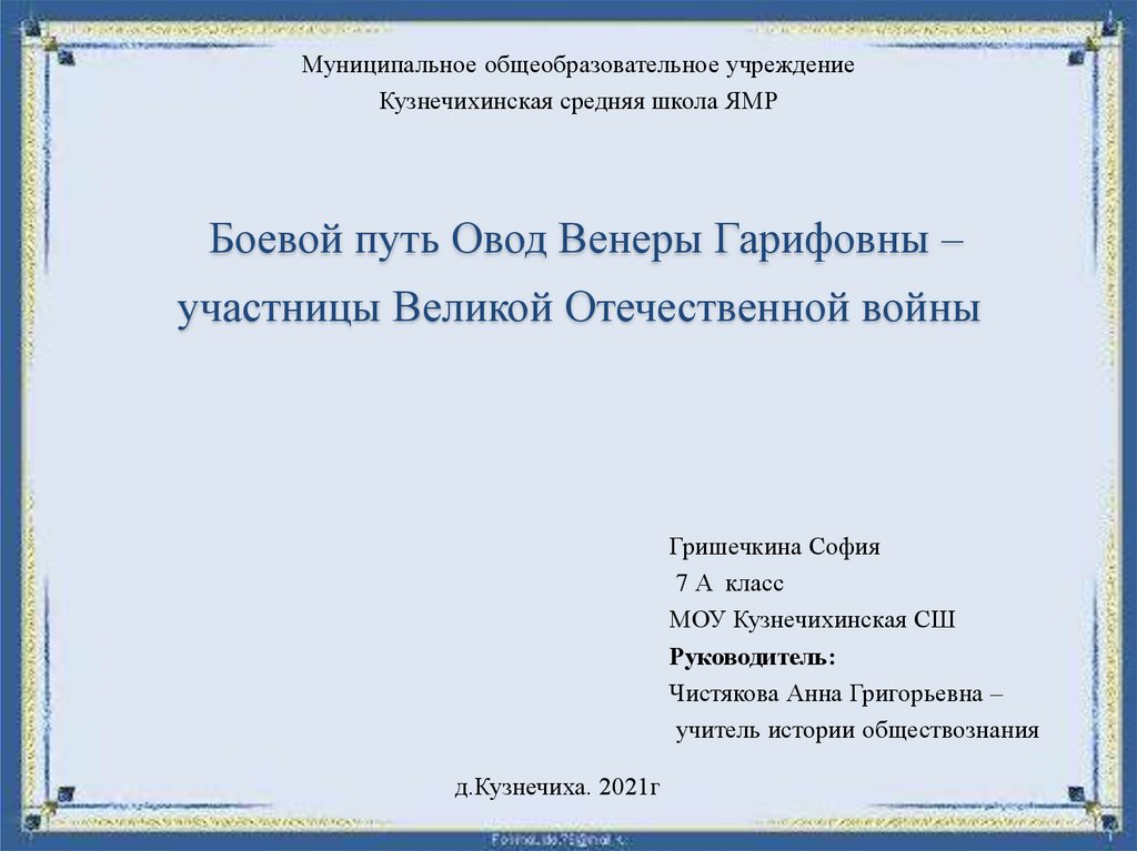изучение боевого пути Овод Венеры Гарифовны в