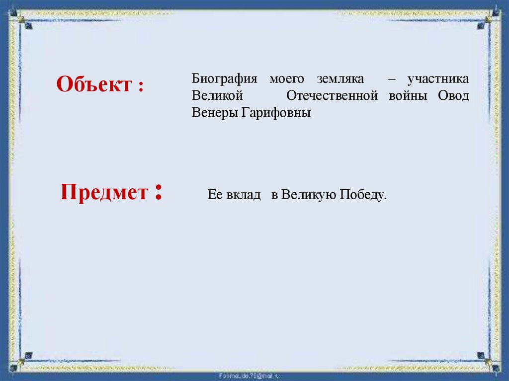 Объект :Предмет :