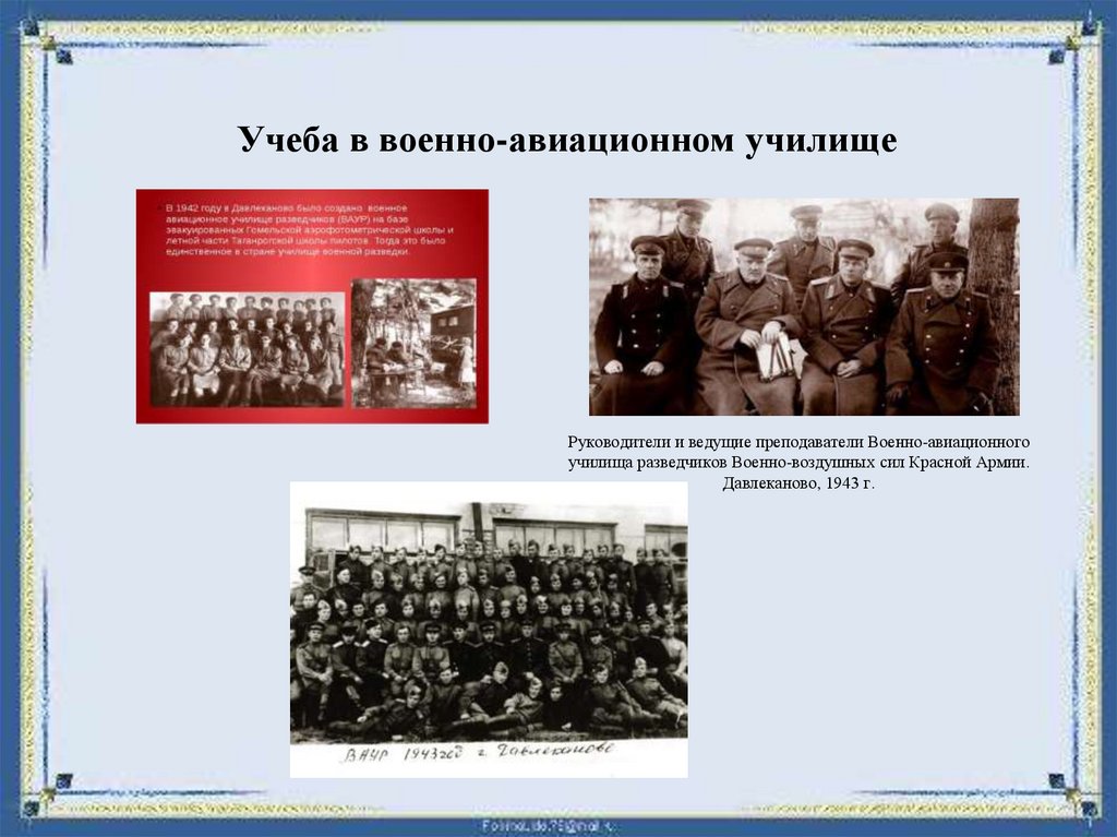 Учеба в военно-авиационном училищеРуководители и ведущие преподаватели Военно-авиационного
