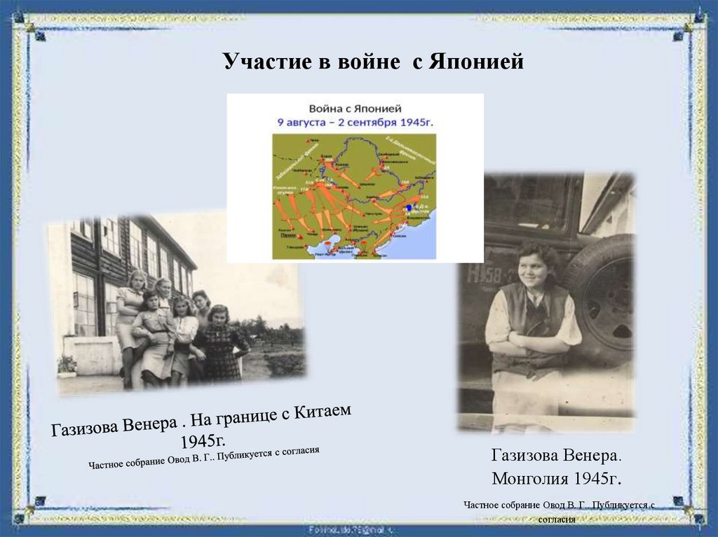 Участие в войне с ЯпониейГазизова Венера.