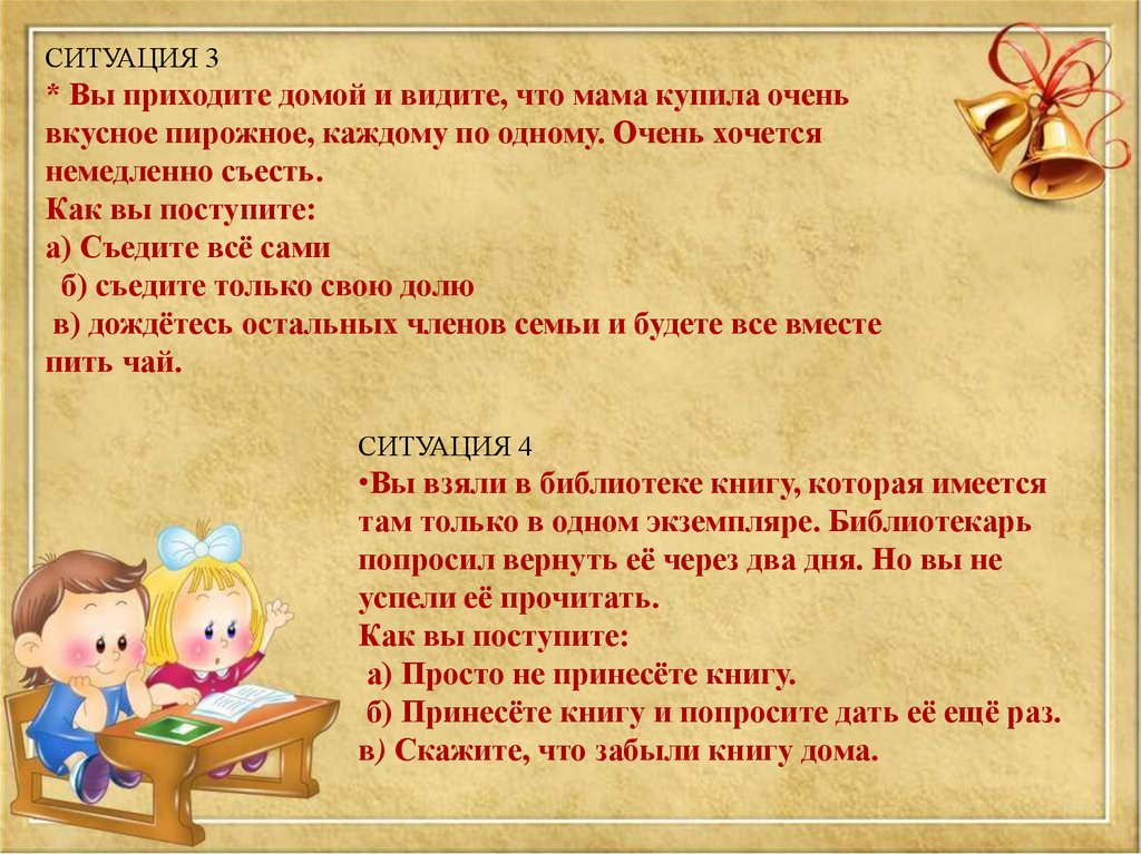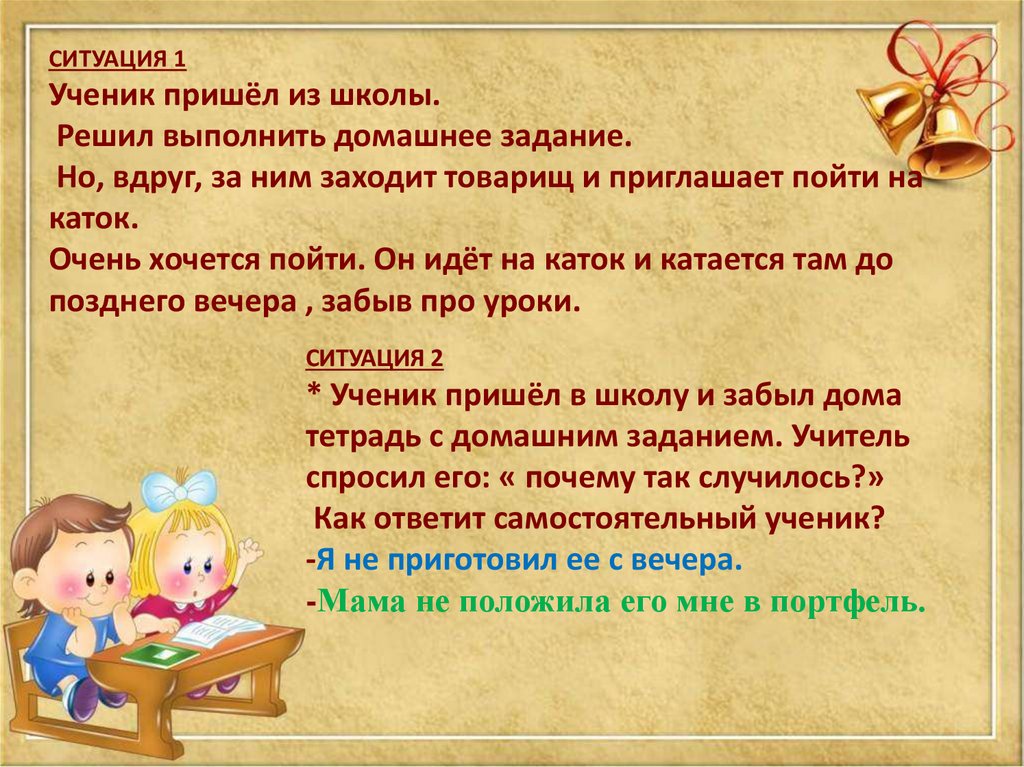 СИТУАЦИЯ 1Ученик пришёл из школы.