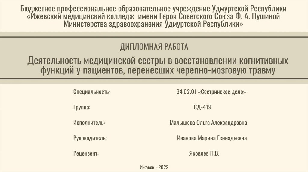 Деятельность медицинской сестры в восстановлении когнитивных функций у пациентов