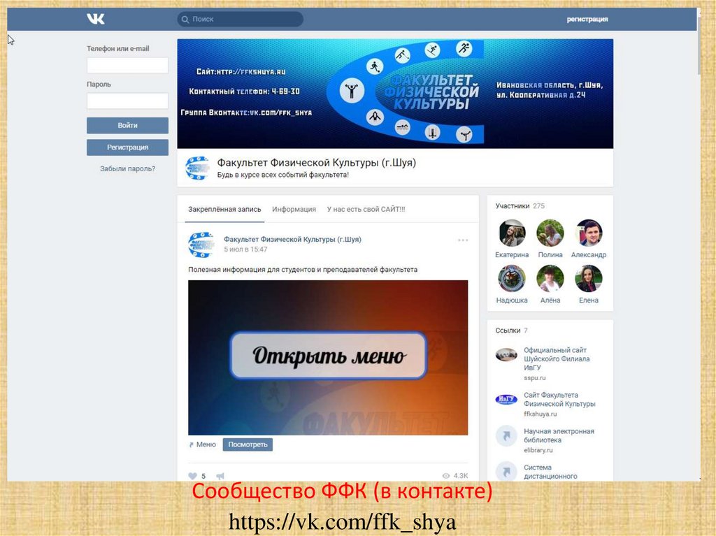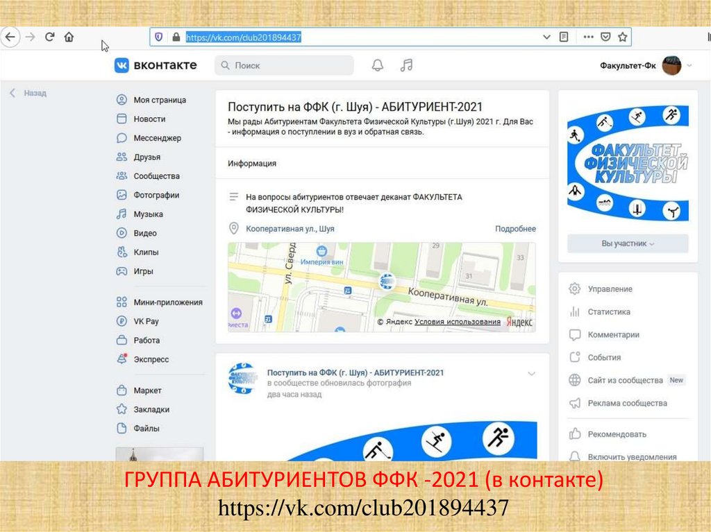 Страница VK«Поступить на ФФК (г. Шуя) https://vk.com/club201894437