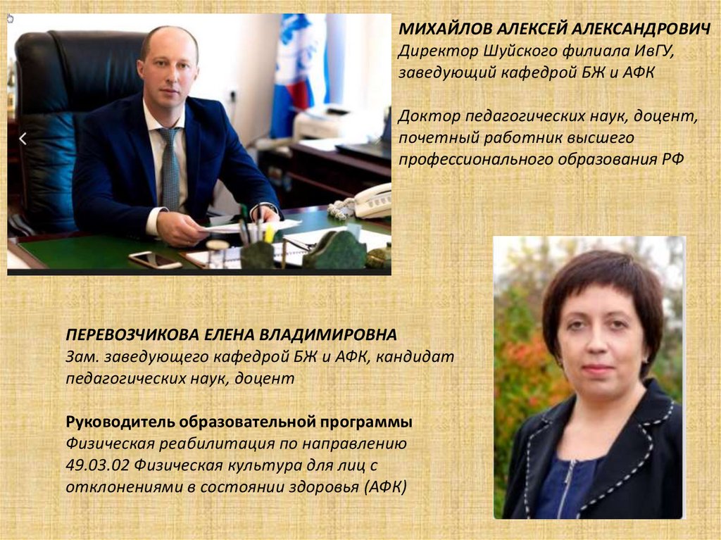 МИХАЙЛОВ АЛЕКСЕЙ АЛЕКСАНДРОВИЧДиректор Шуйского филиала ИвГУ,