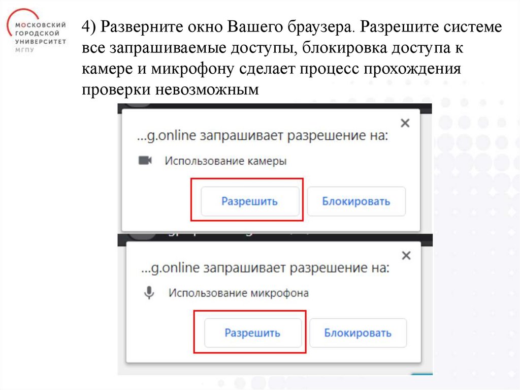 камере и микрофону сделает процесс прохождения
