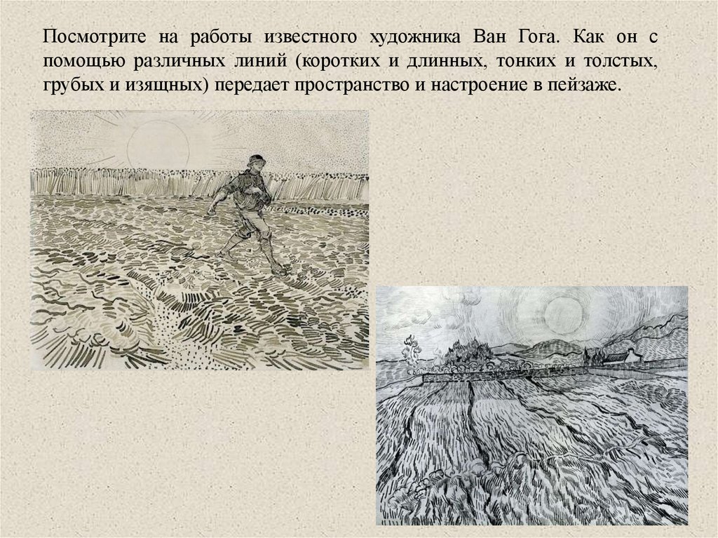 Посмотрите на работы известного художника Ван Гога. Как он спомощью различных линий (коротких и длинных, тонких и толстых,