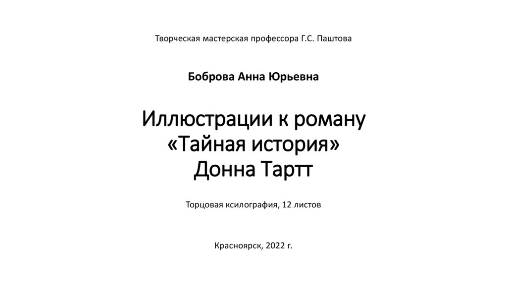 Творческая мастерская профессора Г.С. ПаштоваБоброва Анна Юрьевна