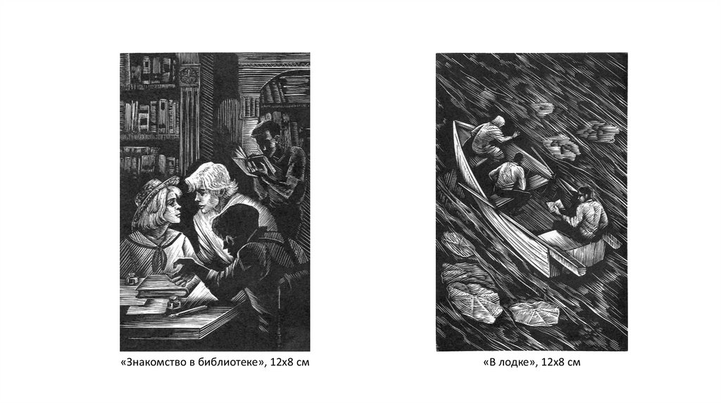 «Знакомство в библиотеке», 12х8 см«В лодке», 12х8 см